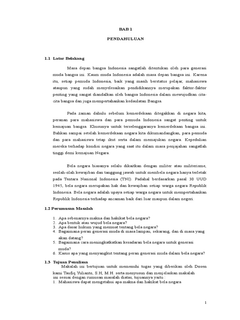 Lanud S Sukani Majalengka Gelar Sosialisasi Bela Negara Dikalangan Generasi Muda Birukuning from i2.wp.com Karakter bangsa sangat tergantung dengan karakter generasi muda yang terbentuk sejak dini, jika karakter generasi muda tidak mempunyai 18 nilai moral, maka karakter bangsa akan terjadi ketidak seimbangan dalam membentuk kekeluargaan, kerukunan, kepedulian, kemandirian, dan demokrasi dikemudian hari. Anarkisme, dalam konteks apapun tidak dapat dibenarkan, meski mengatasnamakan prinsip kebebasan dan demokrasi. Bahwa keadilan dalam hak dan kewajiban harus seimbang. Perjuangan tersebut harus dimaknai dan dilanjutkan oleh generasi muda dan sudah menjadi kewajiban kita sebagai generasi muda untuk mempertahankan dan mengisi kemerdekaan yang sudah diraih dengan susah payah melalui perjuangan para pahlawan yang sudah mempertaruhkan jiwa dan raganya. Misalnya pemerataan infrastruktur di daerah , persamaan gender dan hak asasi manusia. Menjauhi sikap pemerasan terhadap orang lain. Kesimpulan dari penelitian ini menunjukkan bahwa kesadaran cinta tanah air generasi muda masih rendah dan generasi muda belum memaksimalkan hak dan kewajibannya untuk membela dan mempertahankan. Namun sayangnya, generasi muda indonesia pada saat ini banyak terjerumus pada dunia modernisasi yang timbul akibat dari globalisasi tersebut.